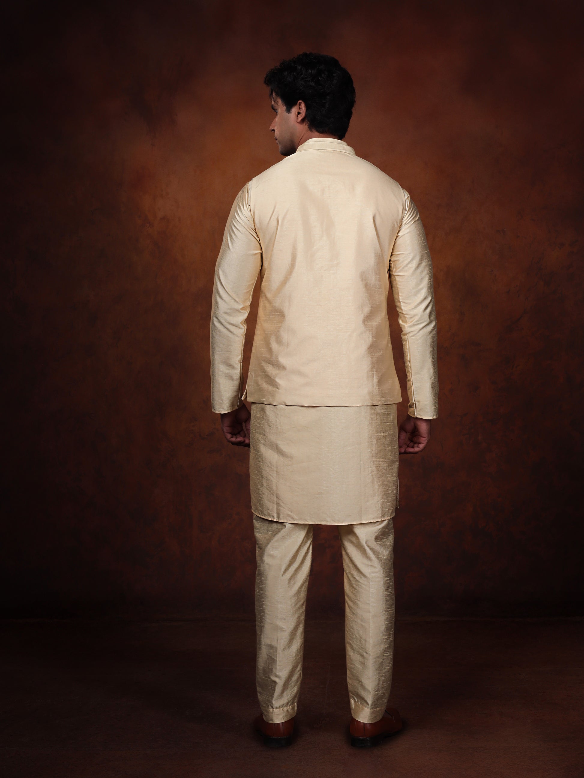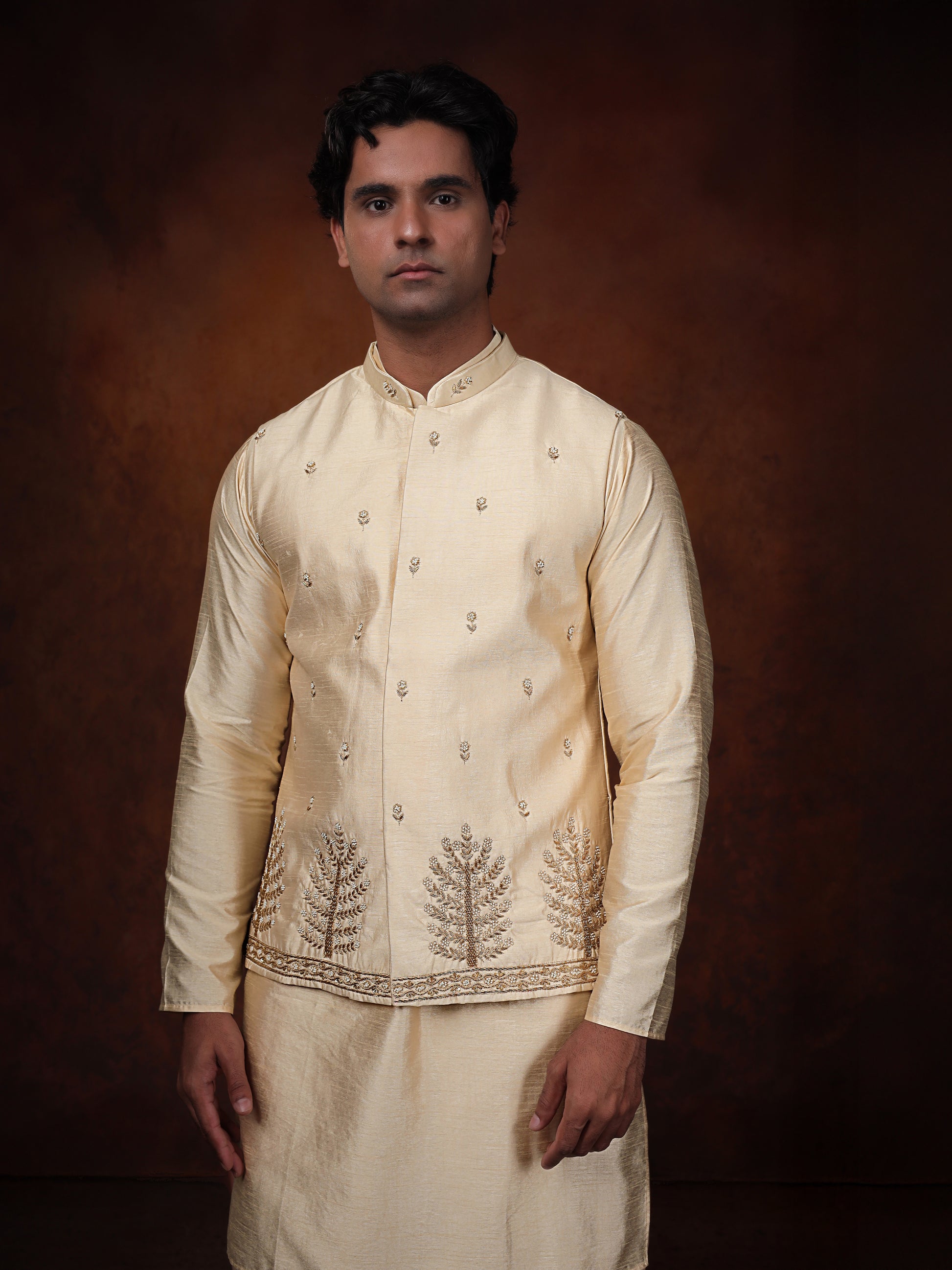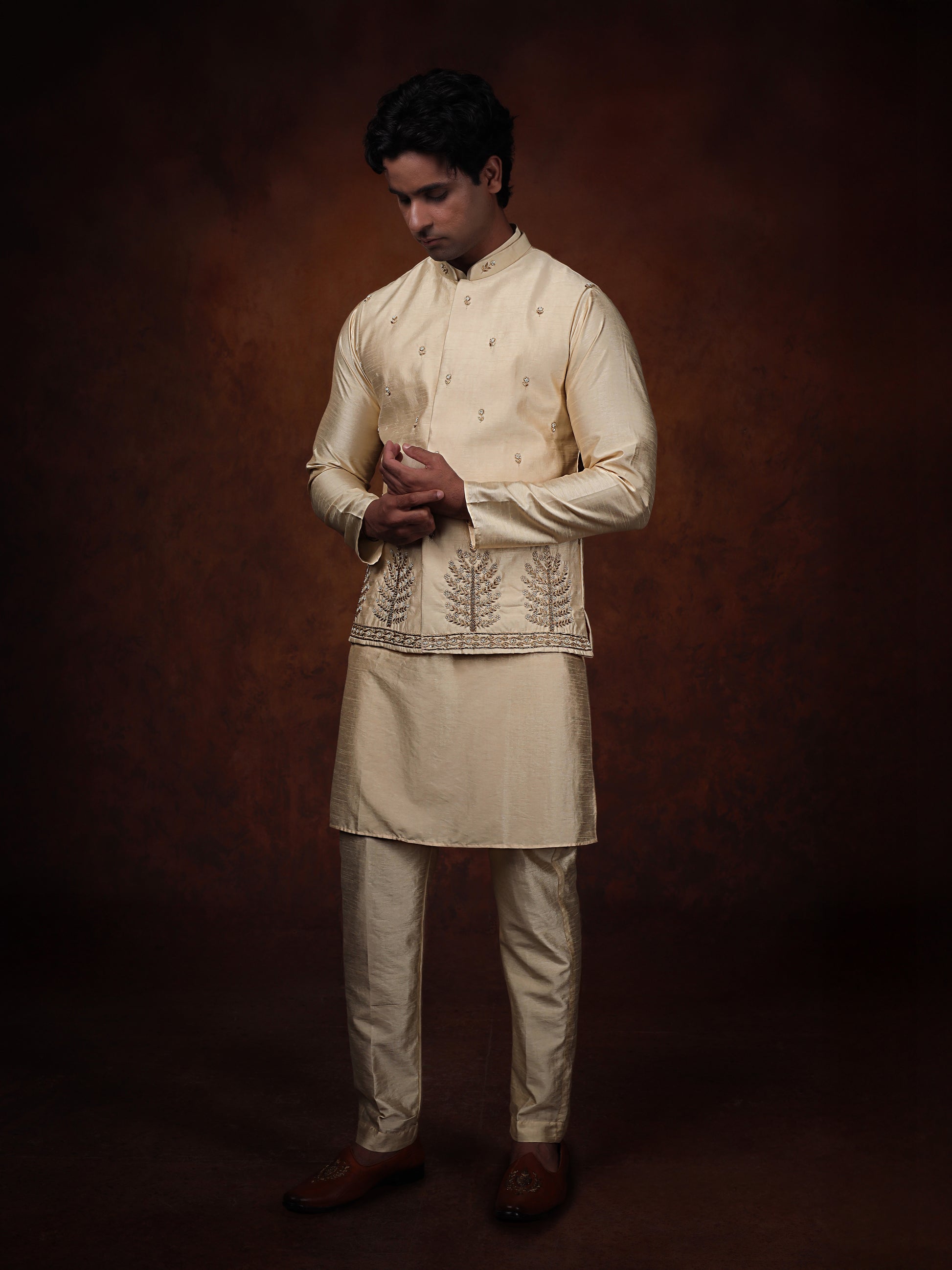 Ivory Dupion Silk Kurta with Embroidered Jacket