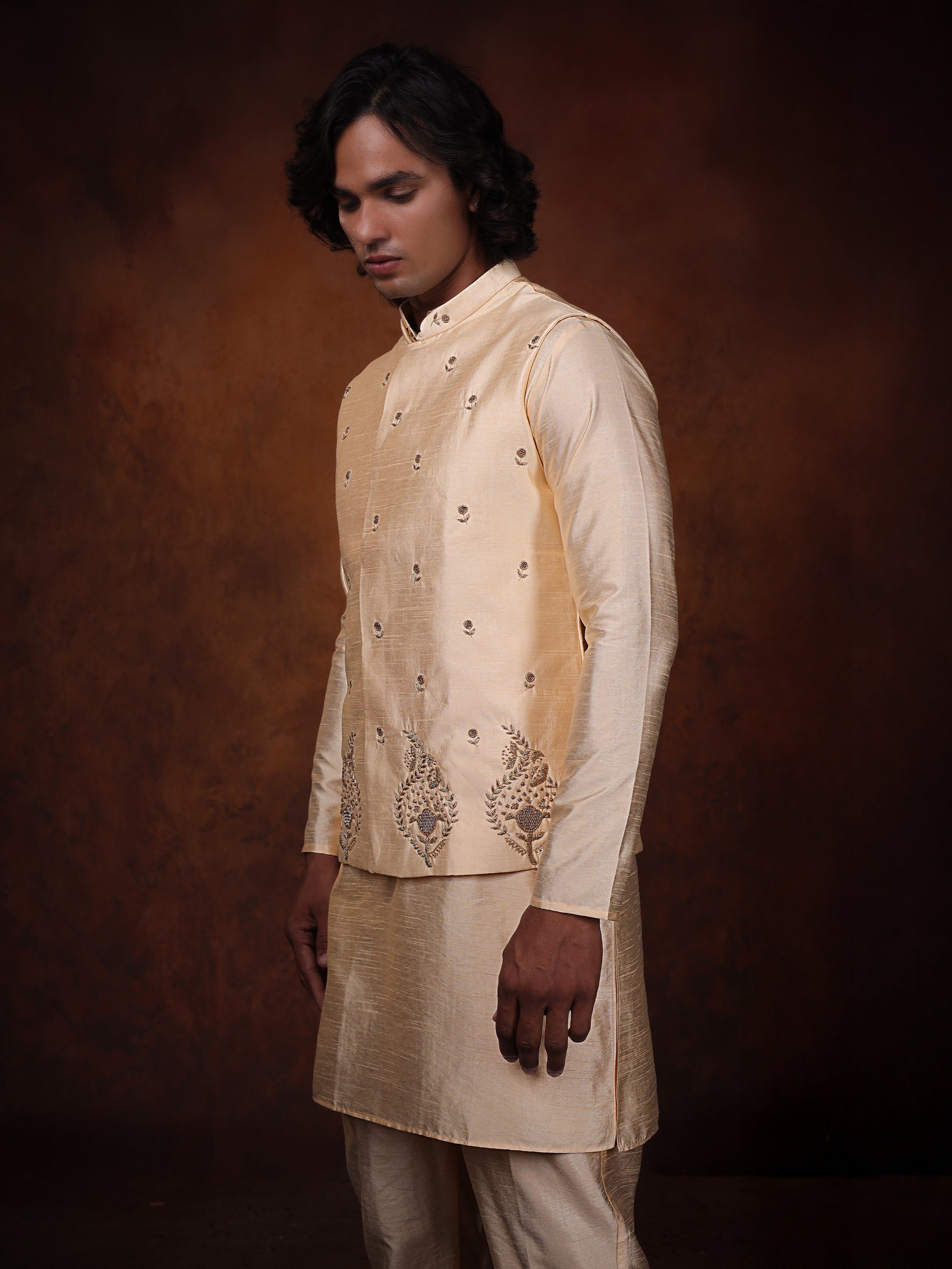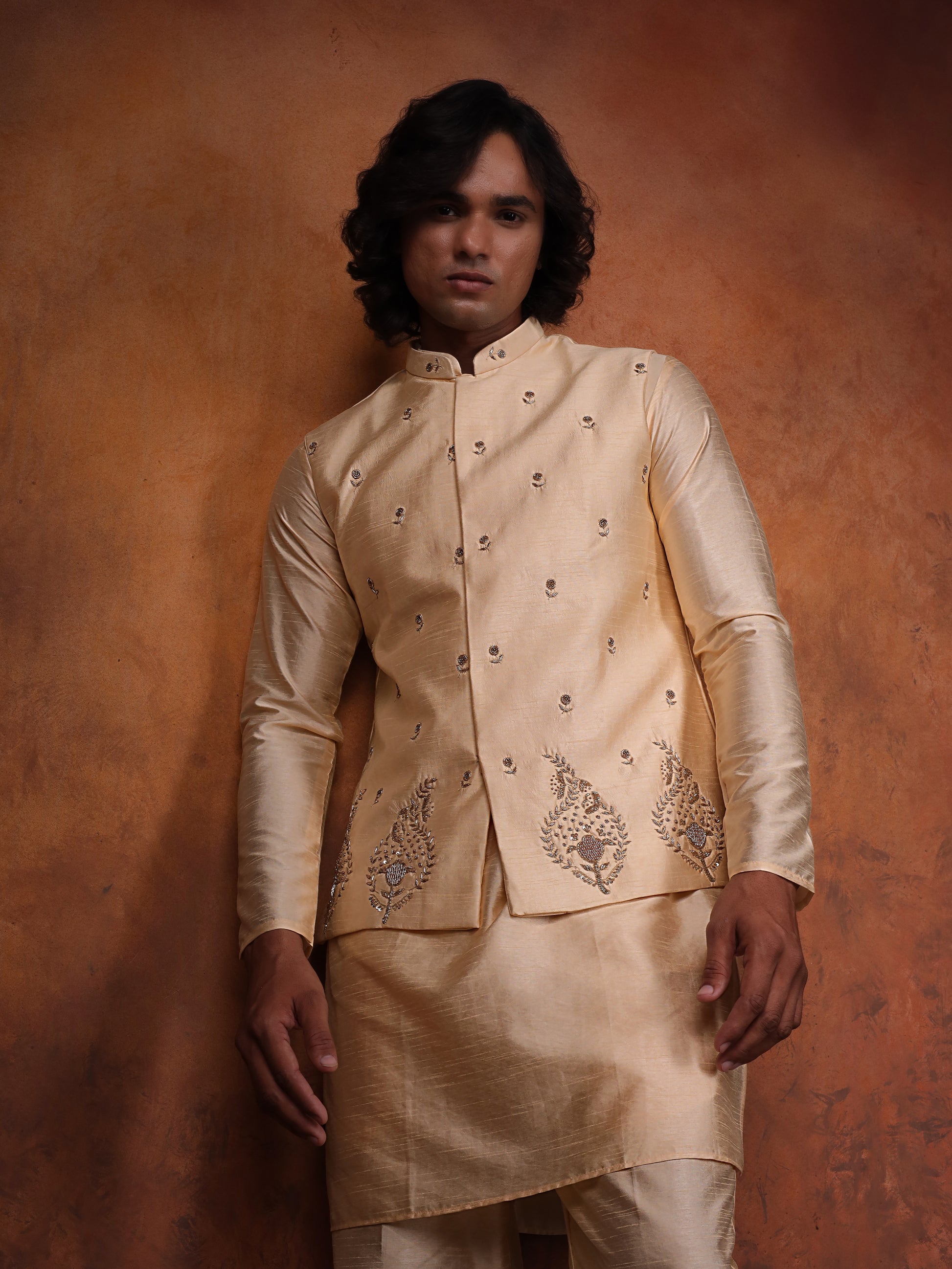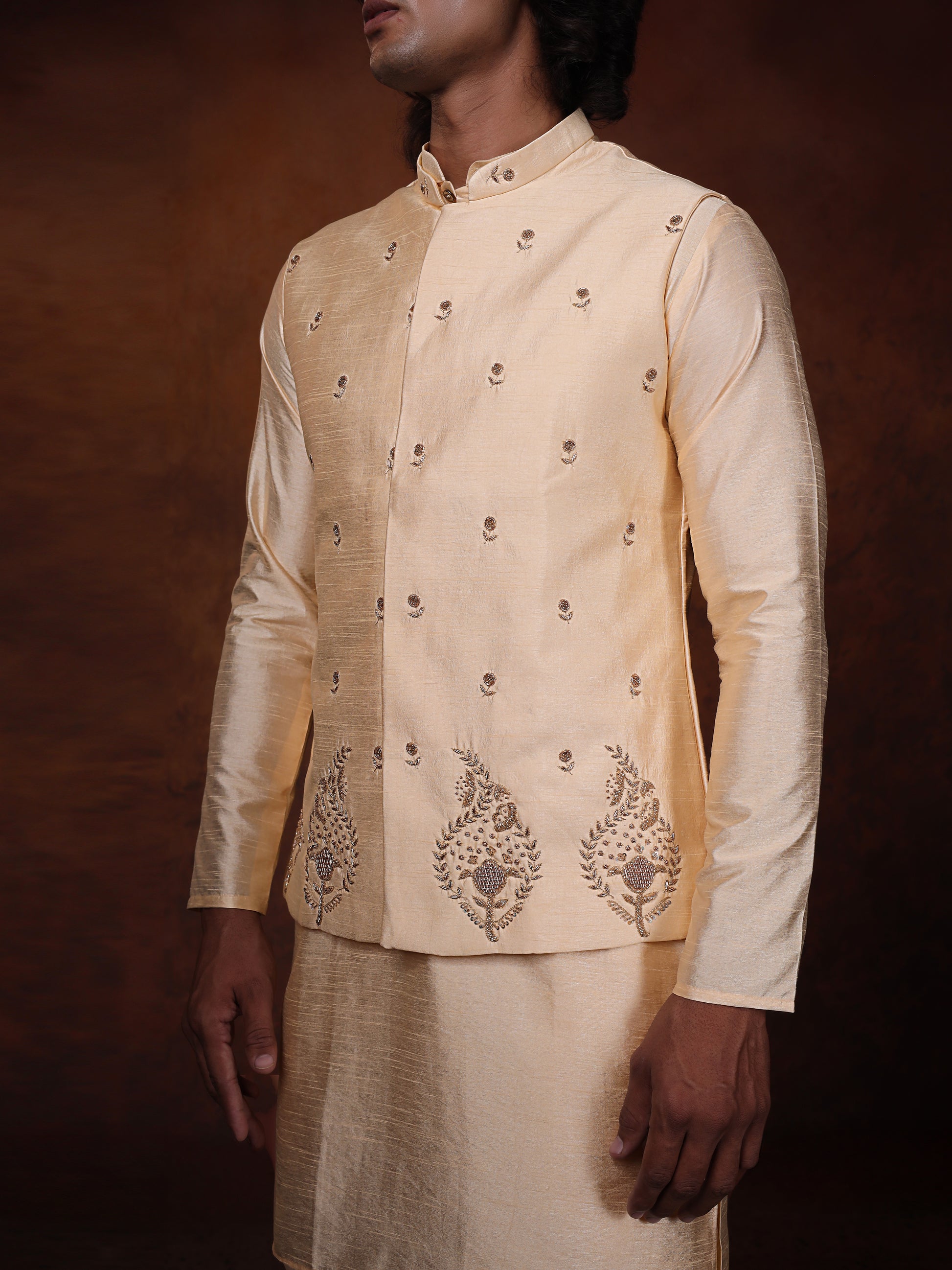Ivory Dupion Silk Kurta With Embroidered Jecket