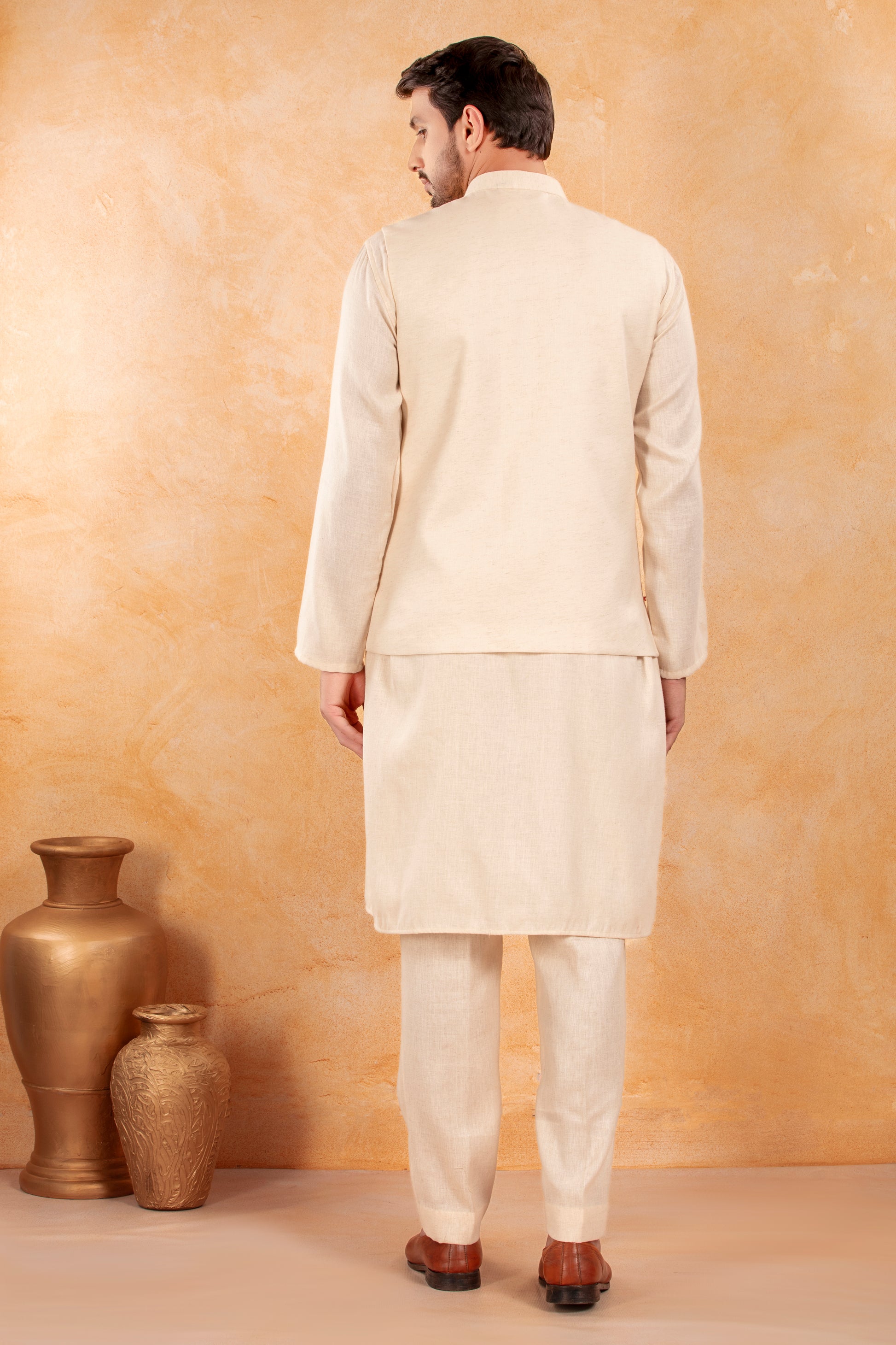Ivory Floral Embroidered Nehru Jacket Kurta Set